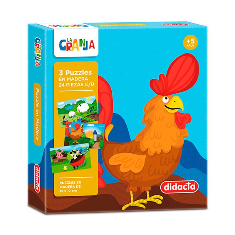 3 Puzzles 24 piezas en madera LA GRANJA, ideal para los más pequeños del hogar, los cuales lograrán desarrollar la imaginación y fomentar el juego en equipo ya que podrán jugar solos o compartir la actividad con sus amigos. Juego de excelente calidad. Ideal para regalar en cualquier ocasión.