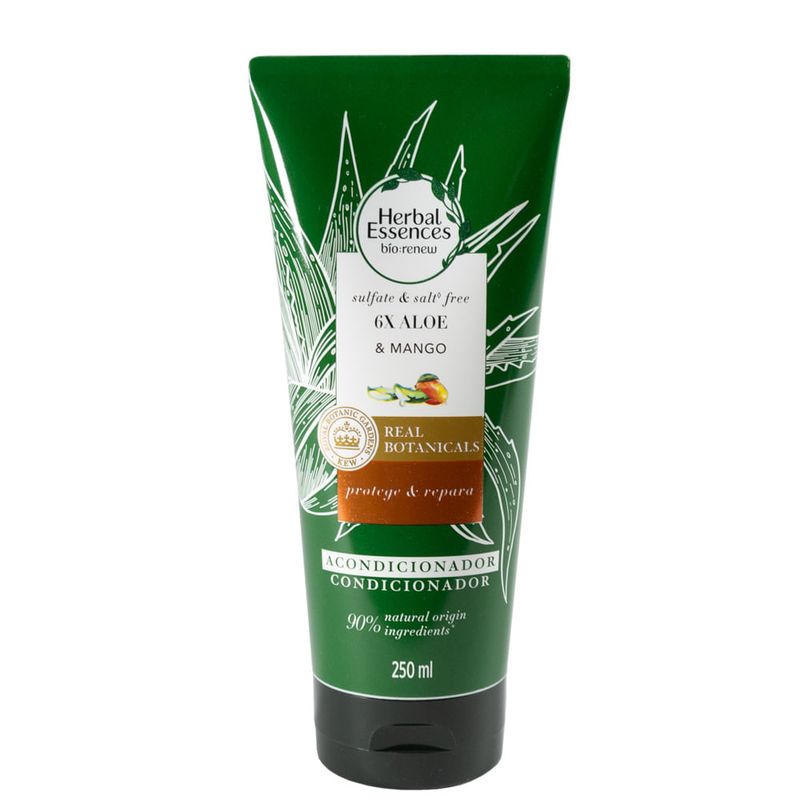 El acondicionador Herbal Essences Aloe & Mango de 250 ml nutre y suaviza el cabello con su fórmula refrescante y exótica. El aloe vera y el aroma a mango dejan tu cabello suave, hidratado y con un aroma delicioso. Disfruta de una experiencia rejuvenecedora con Herbal Essences Aloe & Mango.