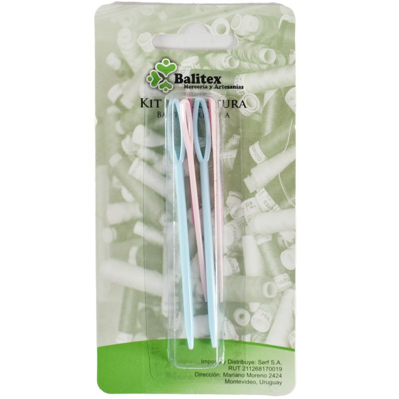 Set de 3 agujas de coser lana de plástico, ligeras y resistentes. Ideales para proyectos de tejido, ofrecen comodidad y facilidad en la costura de lana.