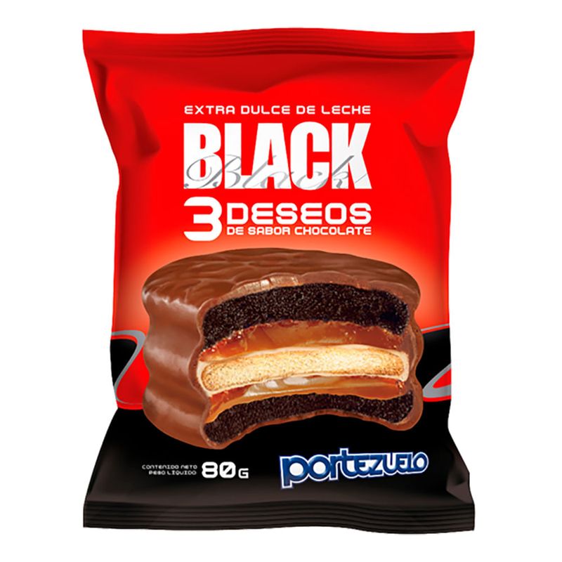 Alfajor PORTEZUELO black 3 deseos chocolate 80 g
