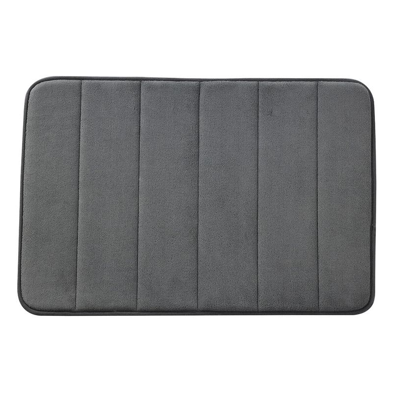 Alfombra para baño de 40x60 cm en color gris. Fabricada con materiales suaves y absorbentes de alta calidad. Ideal para mantener el suelo del baño seco y limpio, aportando un toque moderno y elegante al ambiente.