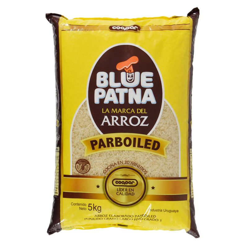 Disfruta de la calidad premium con el Arroz Parboiled BLUE PATNA de 5 kg. Granos dorados, textura esponjosa y sabor exquisito. La elección perfecta para tus platos favoritos.