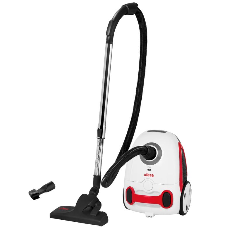 Aspiradora con bolsa Ufesa AC3050 Alta eficiencia: Triple A.Diseño compacto 2L de capacidad Filtro HEPA 13.Capacidad 800w.Garantia 2 años