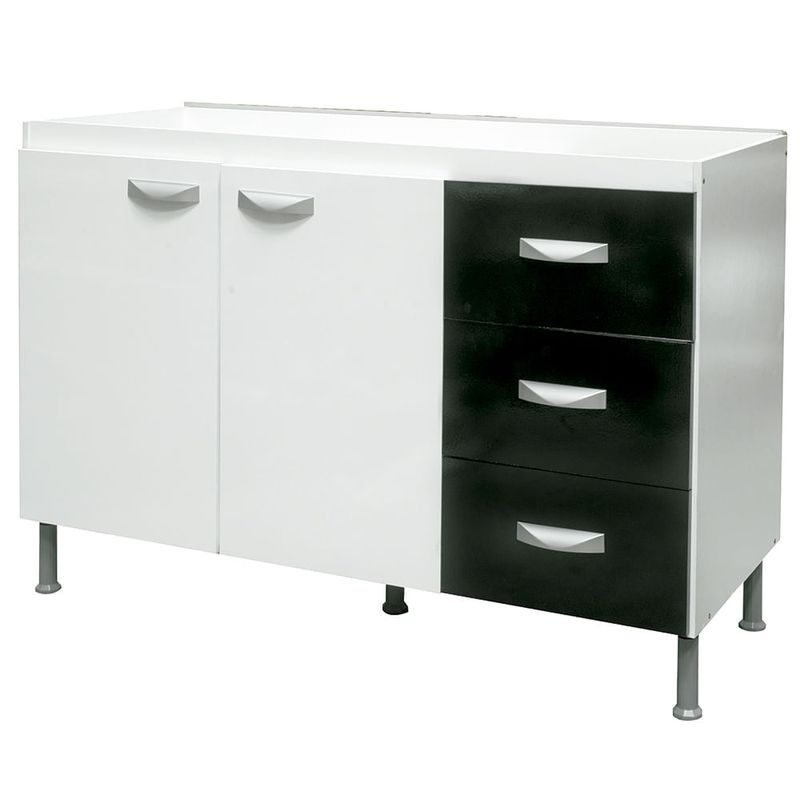 Bajo mesada combinada blanco/negro 120x80x52cm, ideal para tu hogar. Este artículo se vende en caja, el armado no está incluido, usted puede contactar a un armador externo llamando a nuestro servicio de Atención al Cliente. El artículo ofrecido es el que corresponde a la descripción, cualquier accesorio es meramente ilustrativo.