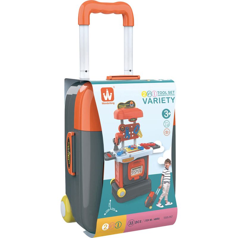 Banco de herramientas de pie con accesorios y valija, Ideal para los más pequeños del hogar, los cuales lograrán desarrollar la imaginación y fomentar el juego en equipo ya que podrán jugar solos o compartir la actividad con sus amigos. Juego de excelente calidad. Ideal para regalar en cualquier ocasión.