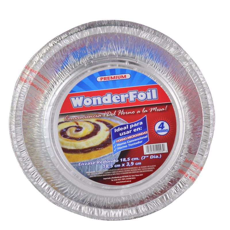 Bandeja aluminio redonda 18,5x3,9cm 4 un.
