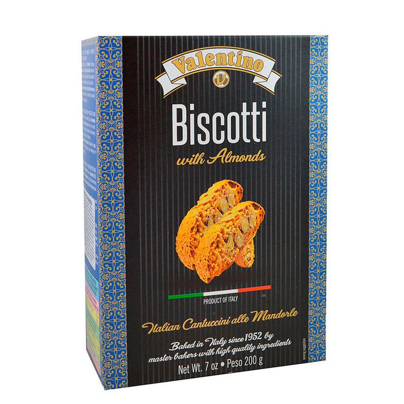 Biscotti de almendras VALENTINO, 200g: Experimenta la deliciosa combinación de almendras tostadas en cada bocado de estos biscotti crujientes y sabrosos