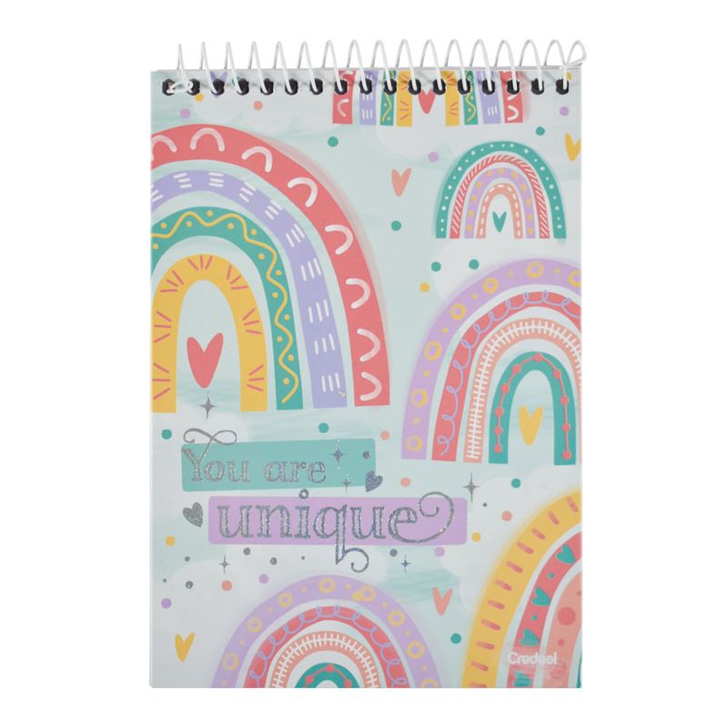 El block super de tapa dura A5 con espiral y 80 hojas es ideal para escribir, dibujar o hacer bocetos de manera cómoda y duradera. Perfecto para usar en la escuela, la oficina o en casa.