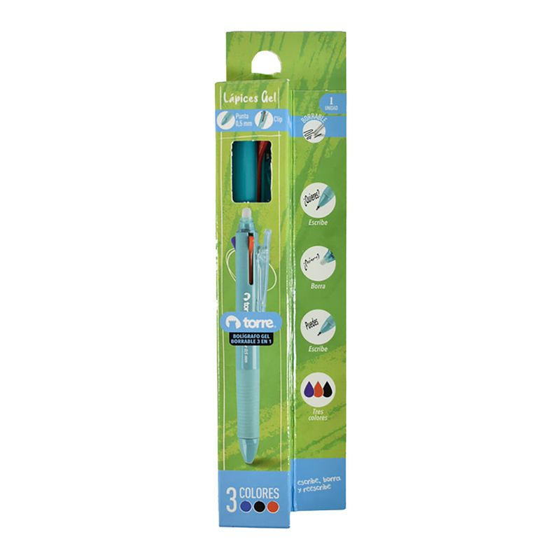 Bolígrafo gel borrable Torre con 3 colores en 1, incluyendo rojo. Perfecto para escribir y corregir con facilidad. Ideal para tomar notas, resaltar y hacer anotaciones de manera conveniente.