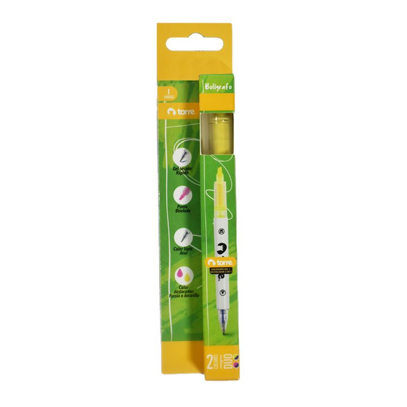 El bolígrafo y destacador Torre Dos en Uno es el accesorio perfecto para llevar en tu escritorio o en tu mochila. Con un diseño compacto y funcional, este práctico utensilio te permite escribir y resaltar con facilidad. ¡Ideal para estudiantes y profesionales!