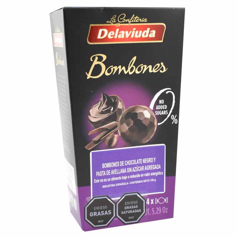 AlmacénDesayuno merienda y postresGolosinas chocolates y bombonerasBombones DELAVIUDA chocolate negro sin azúcar 150 g