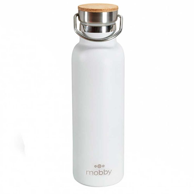 Botella acero inoxidable 450ml de pared blan tapa bamboo MOBBY, producto de excelente calidad.