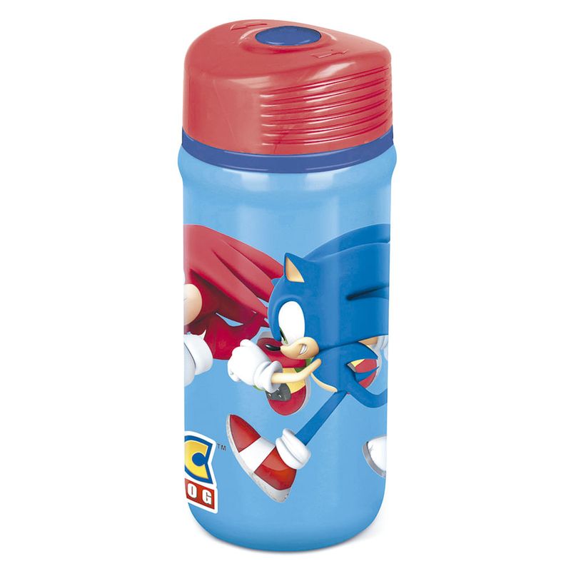 ¡A toda velocidad con Sonic! Botella Twister de 390 ml con diseño del veloz erizo azul. Hidrátate con estilo mientras te sumerges en la velocidad y diversión.