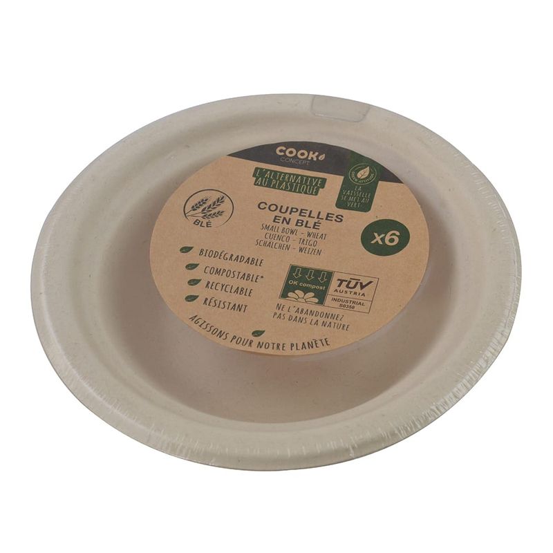 Bowl x 6 descartable en trigo 16.6x16.6x3.7 cm