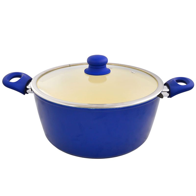 Cacerola azul 28cm aluminio, revestimiento en cerámica y tapa vidrio