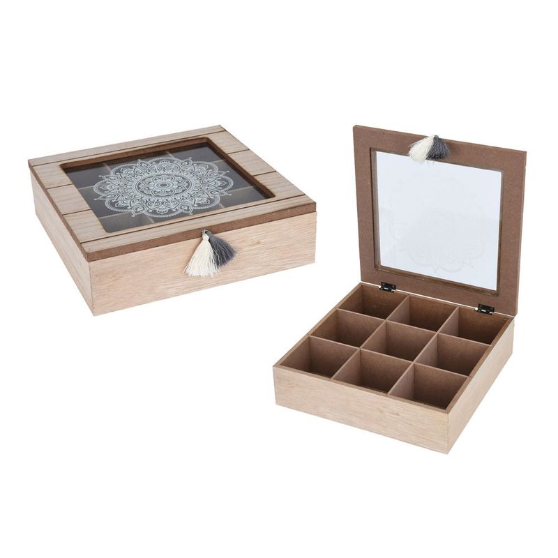Caja de té madera 9 compartimentos, ideal para tu hogar, producto de excelente calidad.