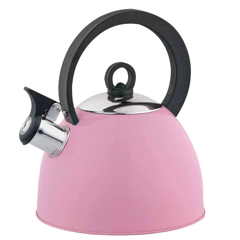 Caldera 2 L silbadora fondo simple rosa pastel. Producto de calidad.