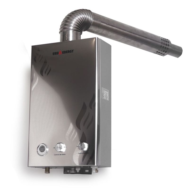 El calentador instantáneo, calienta el agua en el momento en el que esta va a ser utilizada. Su funcionamiento también es de lo más sencillo, su serpentín de agua pasa por encima de una retahíla de fogones que se encargan de calentarla. Estos fuegos se encienden únicamente cuando se abre el grifo del agua caliente y ésta empieza a circular. UruEnergy no sólo pensó en tu seguridad, ya que cuenta con un sistema de protección de cierre de grifo en caso de olvido, sino también en la economía de tu hogar, logrando ahorrar un 100% de electricidad, ofreciendo agua caliente de forma ilimitada. Funciona con baja presión de agua, encendido automático/electrónico, regulación de temperatura. Apto para Supergas en envase de 13 y 45 Kg. Instalación en 5 minutos, selector de estación Verano/Invierno, regulador de caudal de agua.