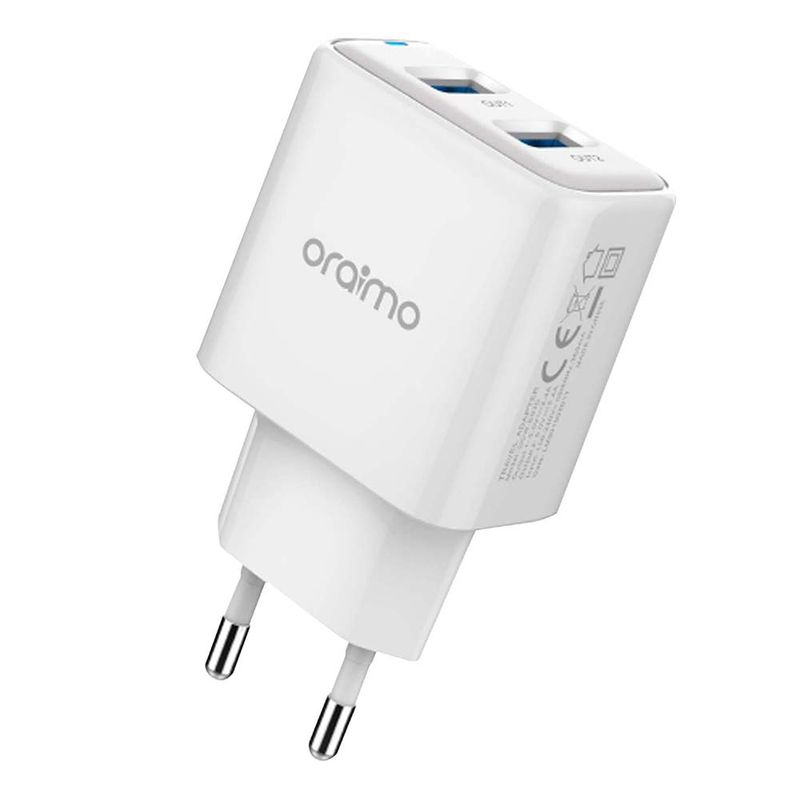 Cargador de pared con 2 puertos USB compatibles con carga rápida y una salida de 12 watts para carga simultánea. Diseño premium con indicador LED que muestra estado de carga, compacto e ideal para viajes. Sistema de multiprotección a prueba de sobrecargas y alzas de temperatura.
