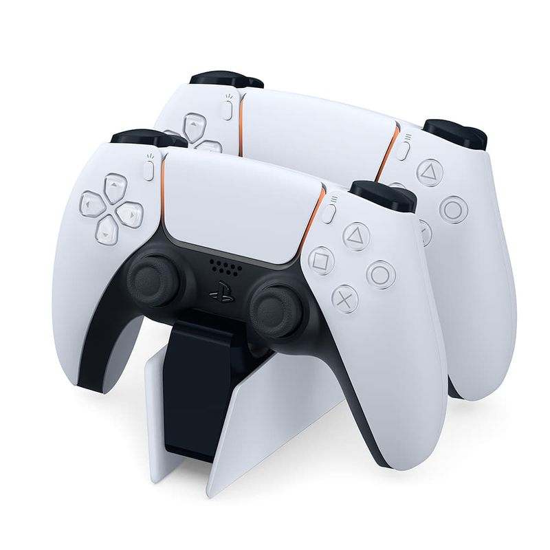 Cargador dual PS5 charging station. Carga hasta dos mandos inalámbricos DualSense al mismo tiempo sin tener que conectarlos a la consola PlayStation 5.