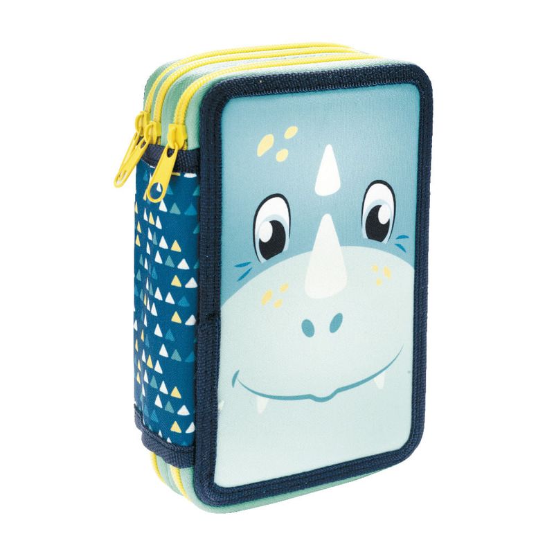 La cartuchera completa DINO de 3 pisos tiene un tamaño de 12 x 6 x 195 cm y está diseñada para guardar lápices, bolígrafos y otros utensilios de forma segura y organizada. Ideal para llevar a la escuela o al trabajo. Disponible en varios colores.