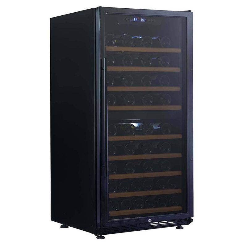 Cava enfriadora de vino Mod. MC-72D color negro, doble zona, capacidad para 68 botellas de 750 ml.