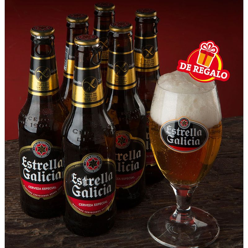 BebidasCervezasCerveza ESTRELLA DE GALICIA sin gluten 6 un. + copa
