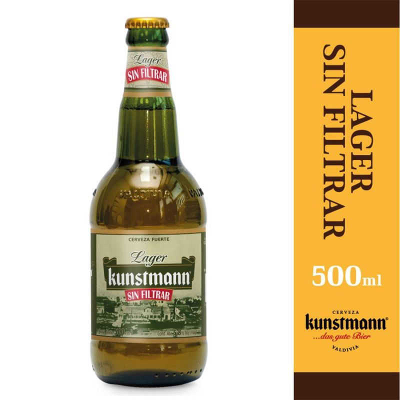 Cerveza KUNSTMANN lager sin filtrar 500 cc. Los envases retornables se cobran al momento de la compra online, pero la devolución es exclusiva en los locales físicos.