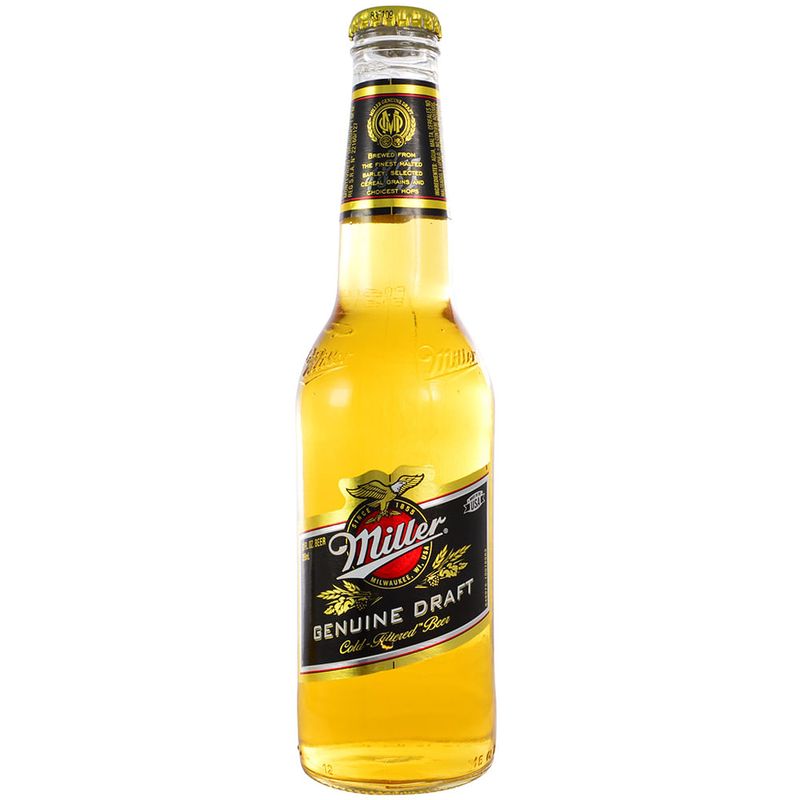 Cerveza MILLER 355 cc. Los envases retornables se cobran al momento de la compra online, pero la devolución es exclusiva en los locales físicos.