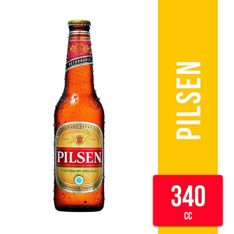 Cerveza PILSEN 340 ml retornable. Los envases retornables se cobran al momento de la compra online, pero la devolución es exclusiva en los locales físicos.