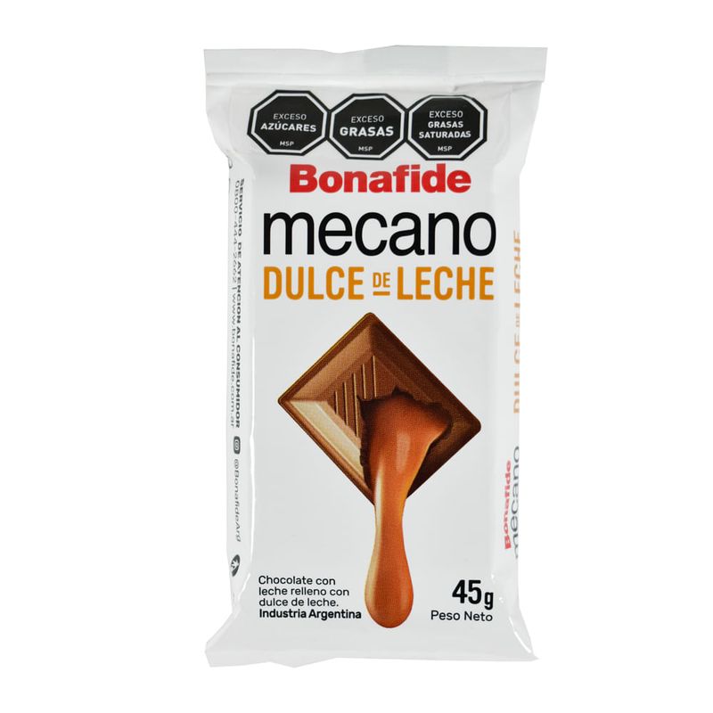 El Chocolate con Leche y Dulce de Leche Mecano de 45 g es una tentación cremosa y dulce. La combinación perfecta de chocolate y caramelo que te hará disfrutar de un momento de puro placer.