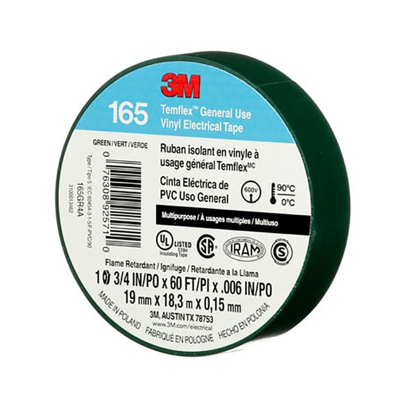 Cinta aisladora 3M Temflex 165 verde 19mm x 9m