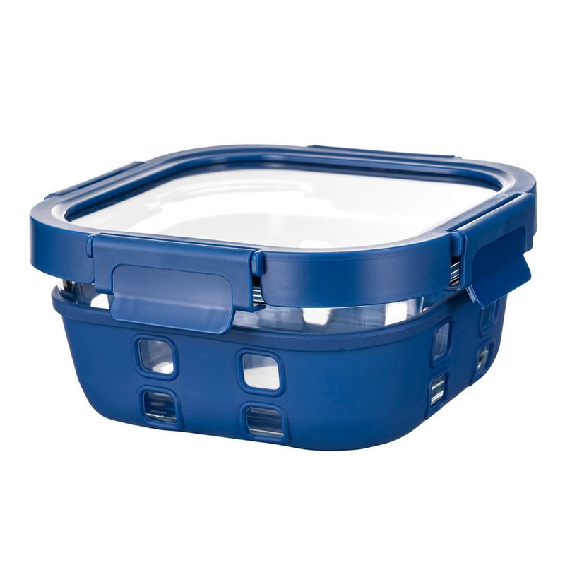 Contenedor vidrio cuadrado 800 ml con cubierta silicona y tapa hermética