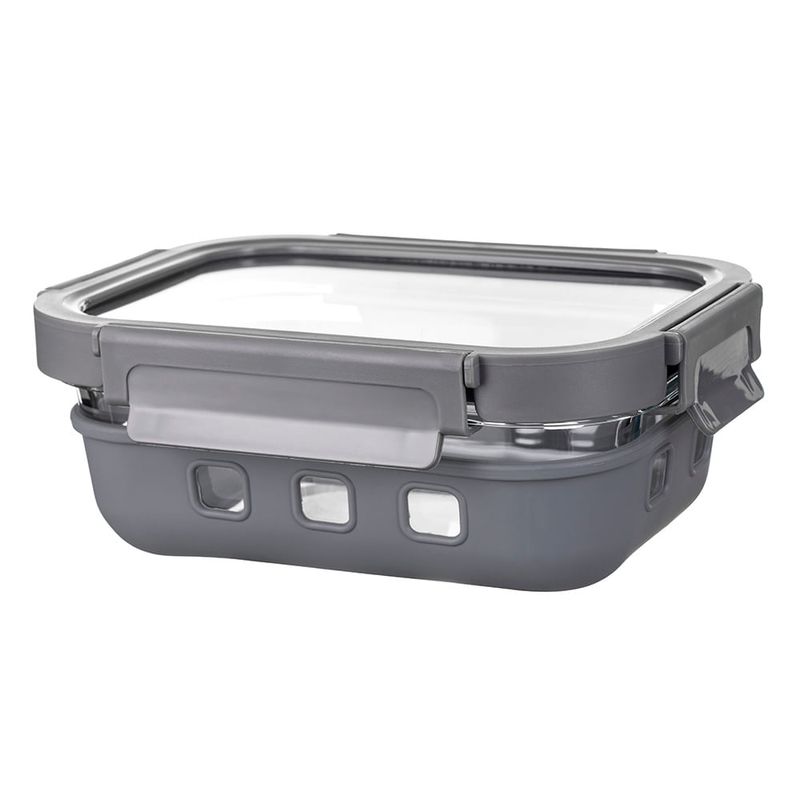 Contenedor vidrio rectangular 640 ml con cubierta silicona y tapa hermética