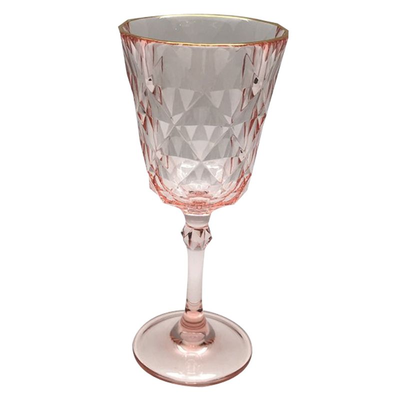 Copa 250 ml en acrílico rosado con borde dorado, producto de excelente calidad.