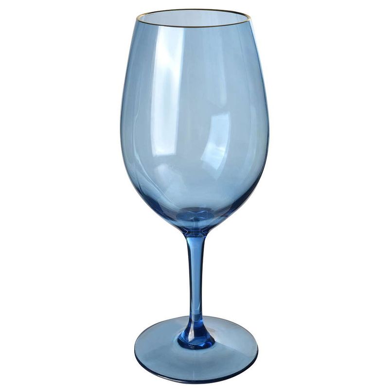 Copa vino 566 ml azul borde dorado. Producto de excelente calidad.