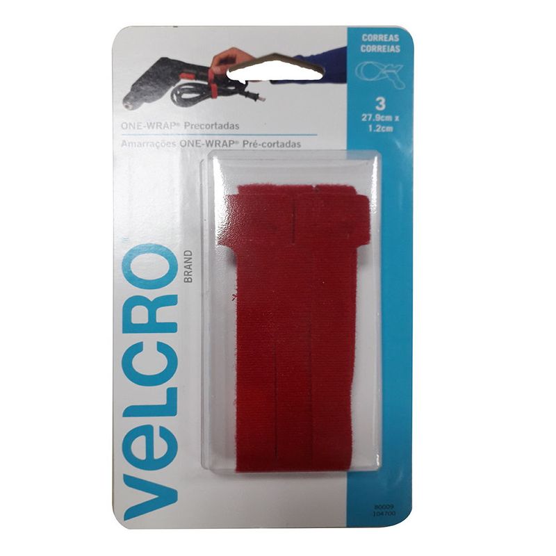 Correa VELCRO One-Wrap 27.9x1.2 cm 3 piezas Roja