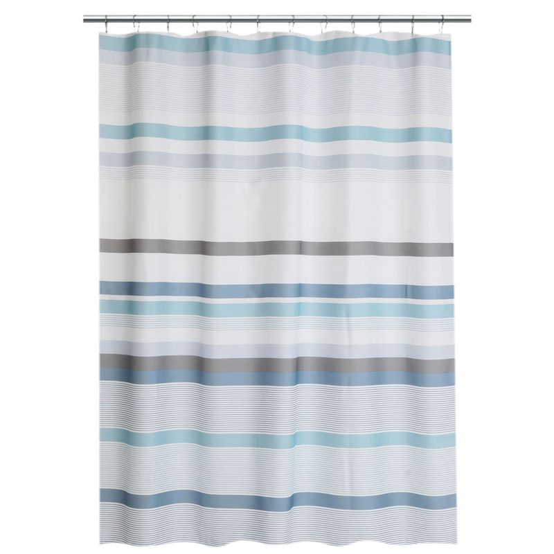 Cortina diseño rayas azules 180x180cm con ganchos, ideal para tu hogar, producto de excelente calidad.