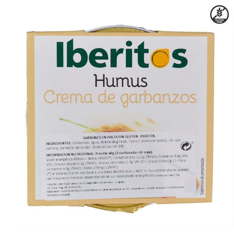 Crema de garbanzos humus IBERITOS sin gluten 70 g. Producto de excelente calidad.