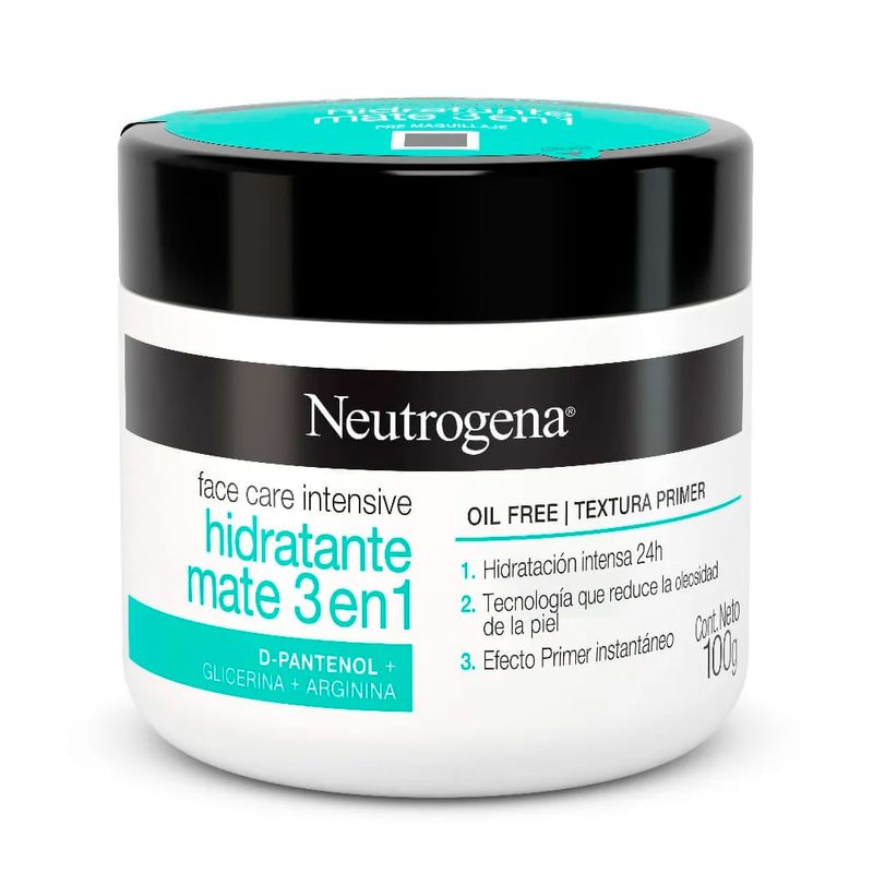 Cuidado facial NEUTROGENA hidratante 3 en 1 de 100 g. Hidrata, limpia y suaviza la piel en un solo paso. Su fórmula ligera y efectiva deja la piel fresca y radiante, ideal para uso diario.