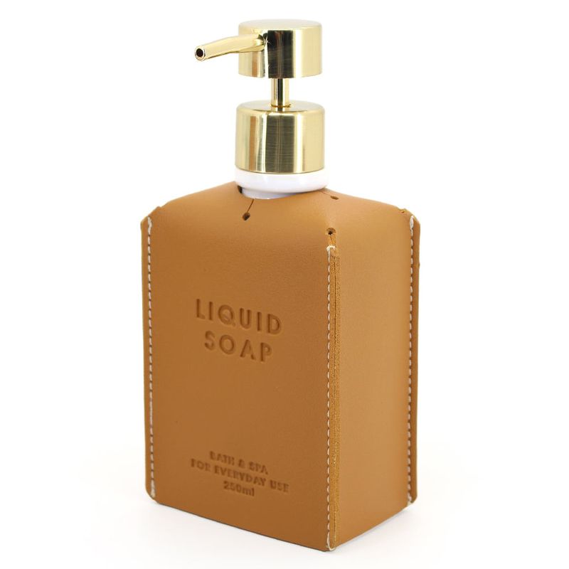 Dispensador de Jabón en Cerámica con Detalle en Ecocuero