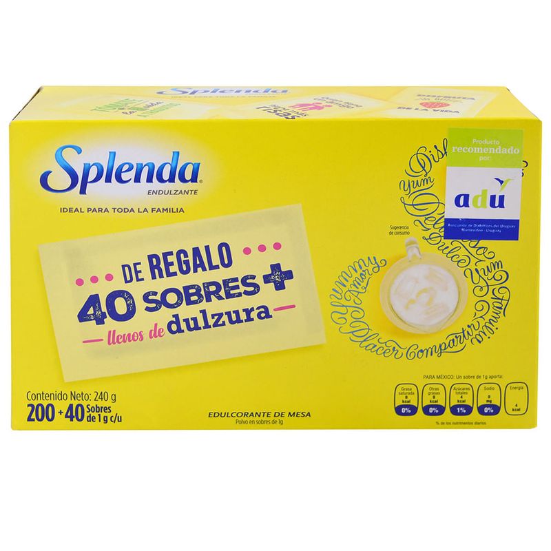 AlmacénDesayuno merienda y postresEdulcorantesEdulcorante SPLENDA 200 sobres + 40 sobres regalo