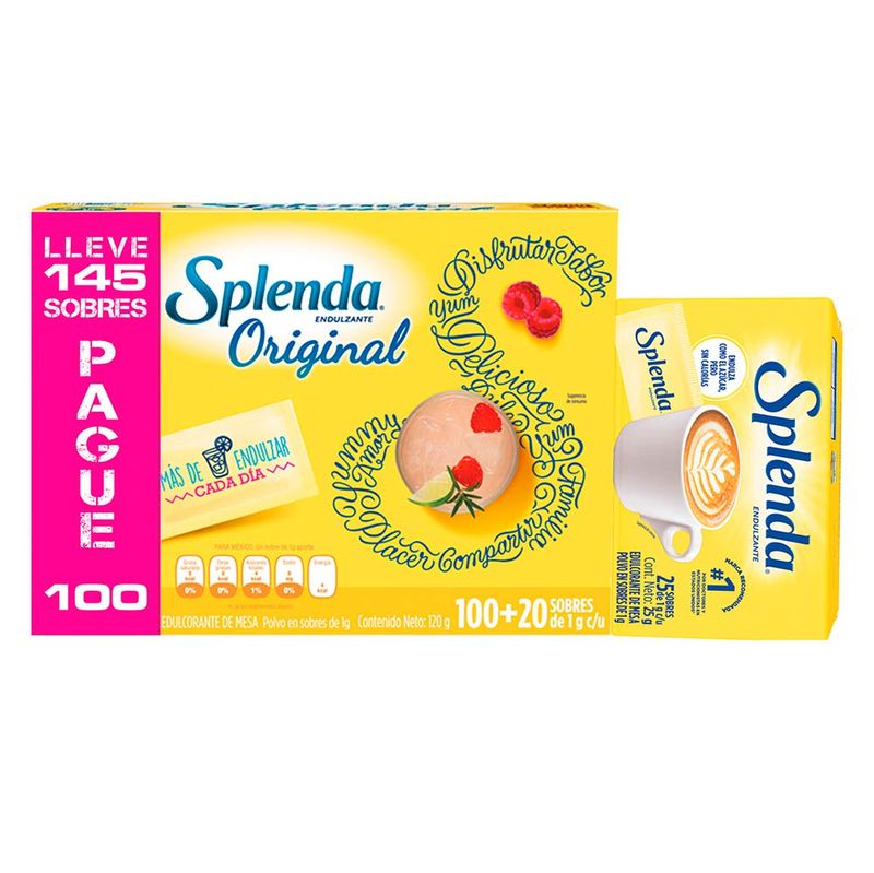 Edulcorante Splenda lleve 145 sobres pague 100: Disfruta del dulzor sin calorías. Splenda, la opción perfecta para endulzar tus bebidas y comidas sin preocuparte por las calorías. Con este paquete, obtienes 45 sobres de regalo. Aprovecha esta oferta y endulza tu vida de manera saludable.