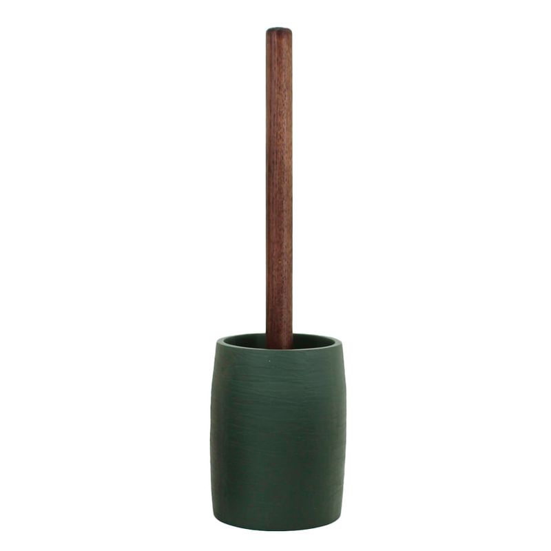 Escobilla para inodoro en poliresina verde con detalle en madera, aporta un toque fresco y moderno a tu baño. Su diseño elegante y práctico asegura una limpieza eficiente, fusionando estilo y funcionalidad.