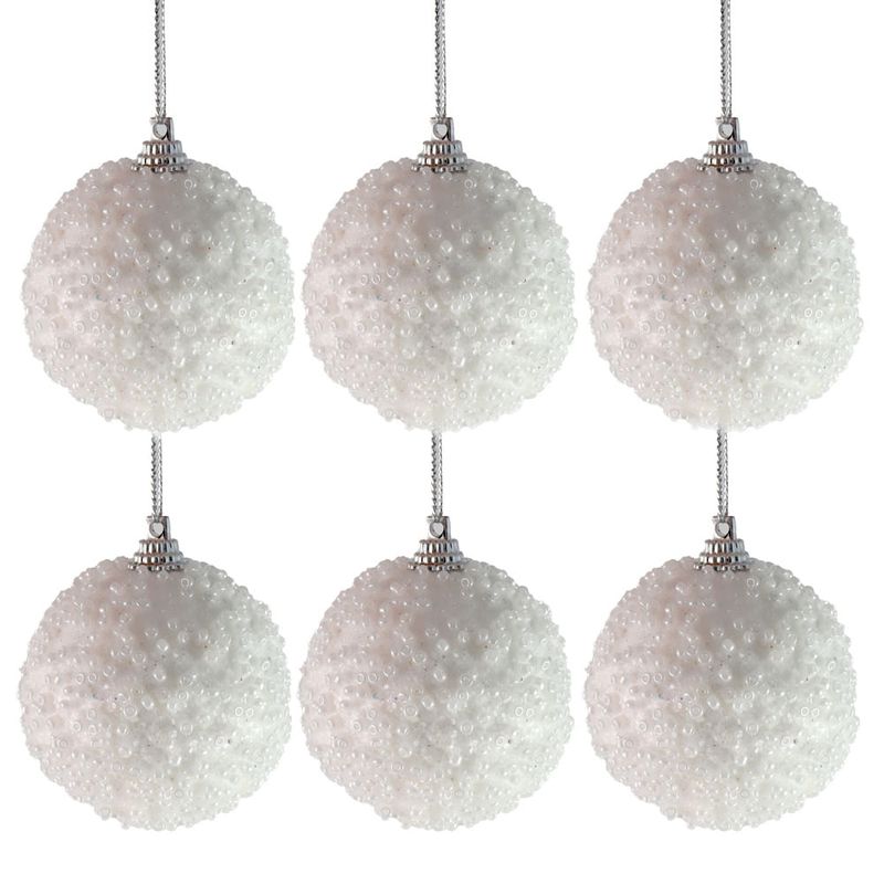 Esfera navideña blanca 6 cm x 6 un. con mostacillas