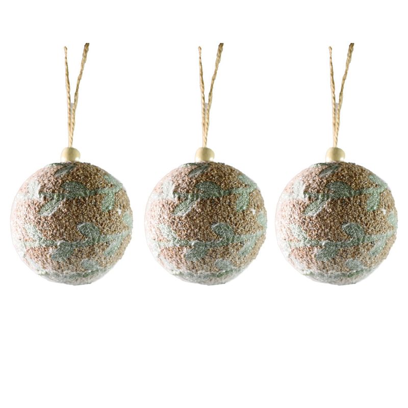 Esfera navideña hojas verdes x 3 un. 8 cm