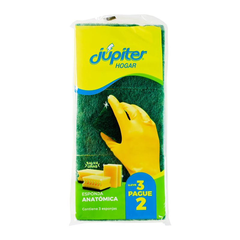 Esponja anatómica Jupiter 3x2: Suave, duradera y ergonómica. Ideal para la limpieza diaria del cuerpo. Absorbe eficientemente el agua y el jabón. Un complemento perfecto para tu rutina de baño.