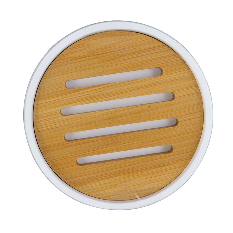 Jabonera blanca + bambú, producto de excelente calidad.