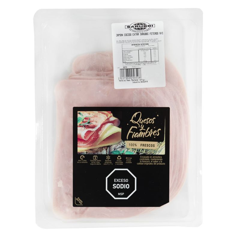 Jamón cocido Extra SARUBBI feteado atmósfera controlada x 250 g