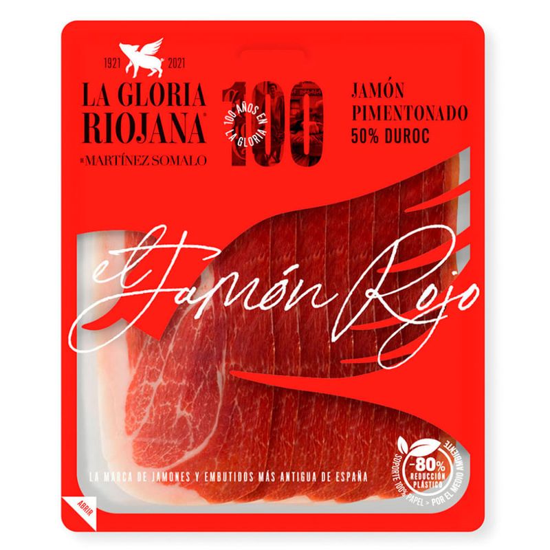 Jamón Pimentonado La Gloria Riojana: Delicioso jamón con un toque de pimentón que realza su sabor. Una exquisitez culinaria, perfecta para paladares exigentes. Descubre el placer de la tradición.